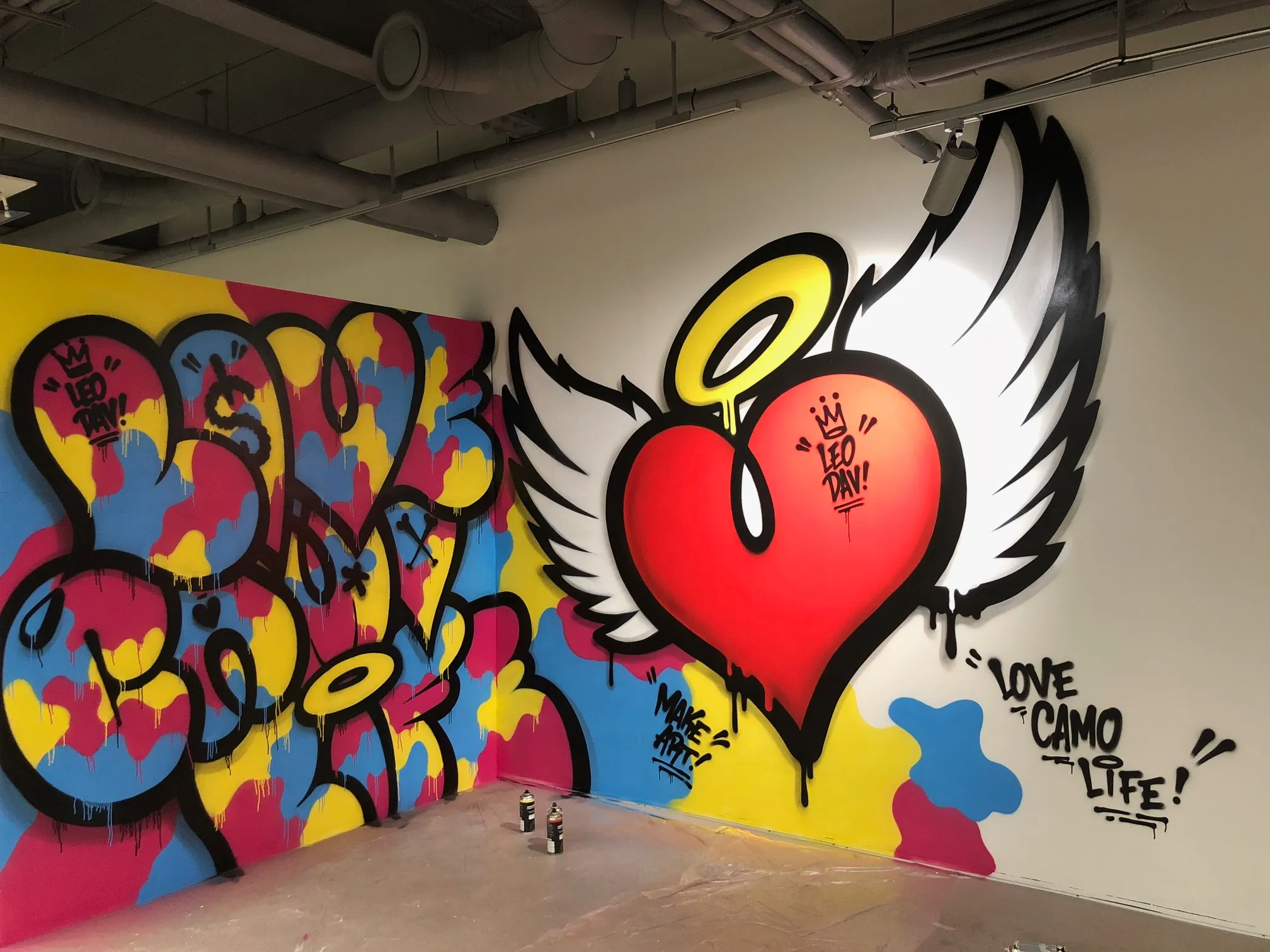 Modern Korean society, marked by fierce competition and rapid change, often sees people hiding their individuality and conforming to a gray camouflage existence. As a graffiti artist, I want to use the walls of the street to instill positive messages like "LOVE CAMO LIFE."